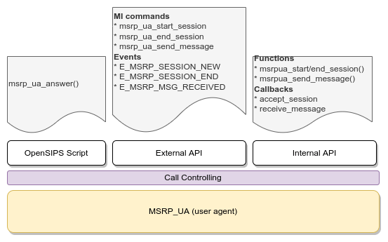 For example, one can exclusively use the MSRP UA module, with the scripting and its external API in order to build a full MSRP API to be used by external apps – to be able to initiate or answer MSRP sessions and to send or received messages.